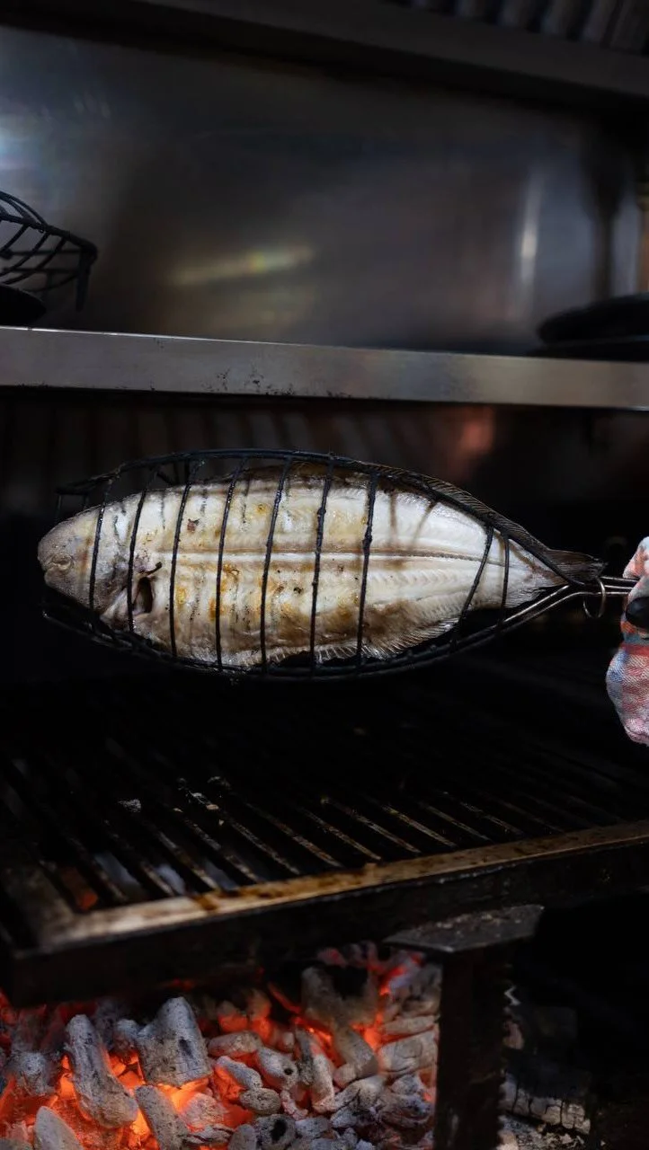En nuestra parrilla preparamos chuletón de vaca vieja, solomillo madurado y otras piezas seleccionadas de ganaderías nacionales e internacionales, pescados y mariscos de las mejores lonjas. Todo cocinado sobre brasas de carbón natural y sarmiento, que realzan el sabor y la textura de cada corte.
