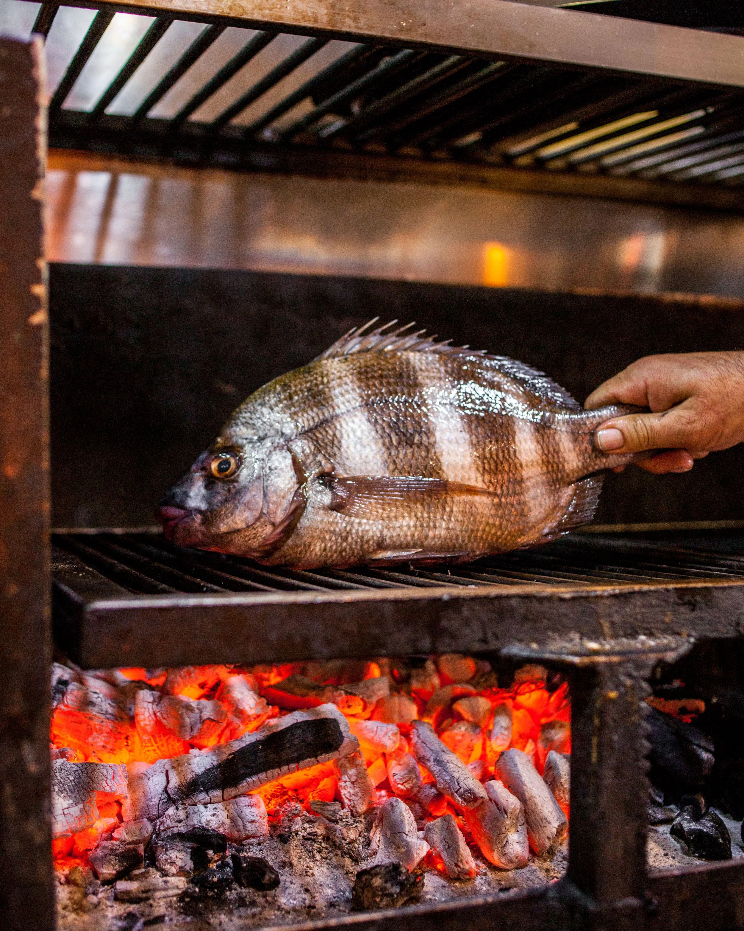 En nuestra parrilla preparamos chuletón de vaca vieja, solomillo madurado y otras piezas seleccionadas de ganaderías nacionales e internacionales, pescados y mariscos de las mejores lonjas. Todo cocinado sobre brasas de carbón natural y sarmiento, que realzan el sabor y la textura de cada corte.